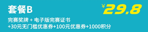 ●因奖牌及服装为定制类产品,一经报名成功,恕不接受退款申请,请理性报名参与。完赛物品将于活动结束后15个工作日内统一寄送(完赛物品快递仅限仅限中国大陆),寄出后会有短信通知。若因用户自身(电话停机、地址错误、快递无法联系本人等)原因导致包裹退回的,后续如果需要重寄,邮费由用户自行承担。
