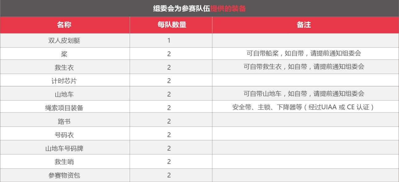 8, 无忧参赛: 组委会统一提供参赛技术装备(皮划艇、山地车、绳索项目);接送机、接送站服务;首创大数据指挥中心,实施立体救援体系,保证选手安全完赛。