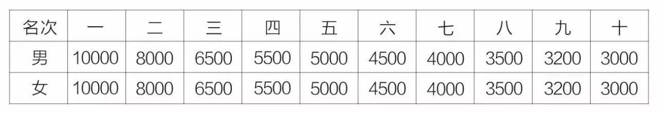 (六)全程马拉松选手获得以上奖金均发放等值人民币。根据中国税法,上述奖金需扣除20%的个人所得税。