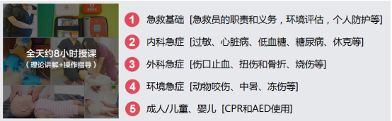 AHA的HS(Heartsaver)社会大众急救培训,全中文授课,全天约8小时的课程中学员将掌握常见急症的判断及处理方式,学会高效的CPR操作及AED的使用,适用与所有年龄段的普通大众。