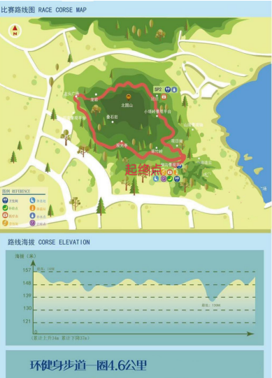 本次比赛设23公里和10公里和5公里三个组别,赛道以北固山健身步道为主,环圈跑步。北固山健身步道,一圈4.6公里。