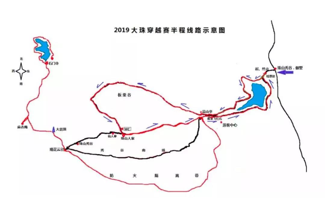 (含入门门票、保险、赛事包、马甲、号码布、完赛奖牌、补给)珠山秀谷检票处--板栗谷--珠山人家--品山亭--南线防火隔离带--大砦顶--石门寺--石门寺水库--石门寺检票处
