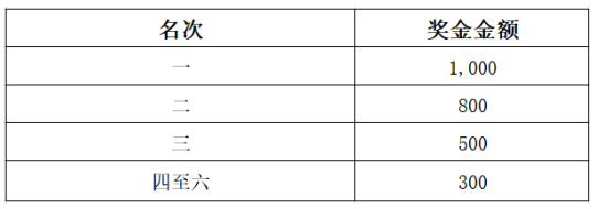 迷你马拉松不设男女组别和计时,奖励最先到达终点的前六名,奖金见下表(人民币,单位:元)