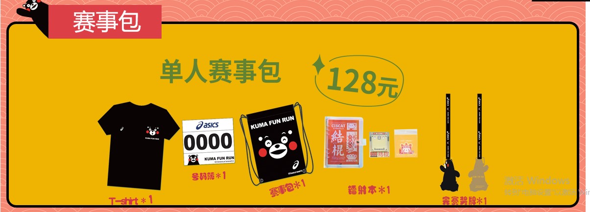 ・ Kumamon限量赛事号码簿 x 1・活动现场抽奖券 x 1・完赛奖牌 x 1(赛事当天发放)
