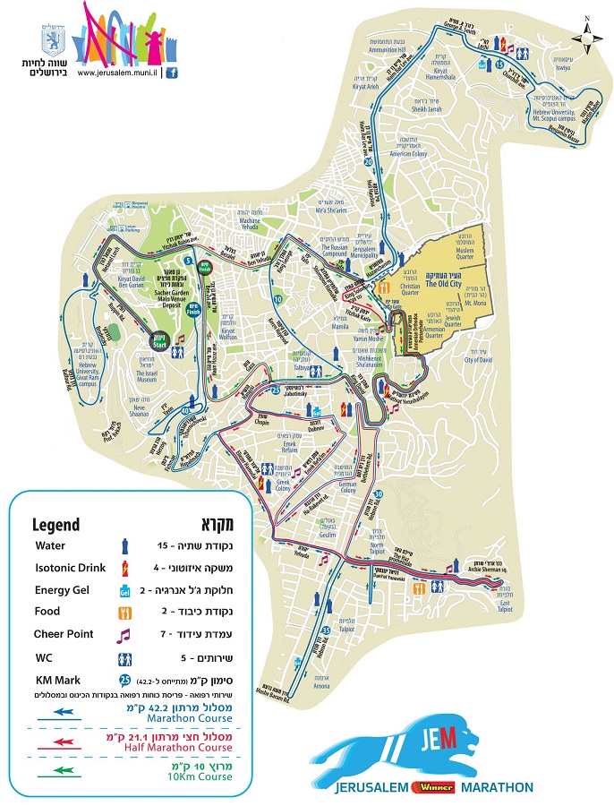 跑者需要跑过耶路撒冷最著名的希伯来大学,环绕古城和西城,穿梭耶路撒冷城中每一片重要的区域,穿过老城,跑经耶路撒冷森林到达终点撒赫公园。赛道难度极高,全程无平路,坡度为主,是名副其实的“魔鬼赛道”。