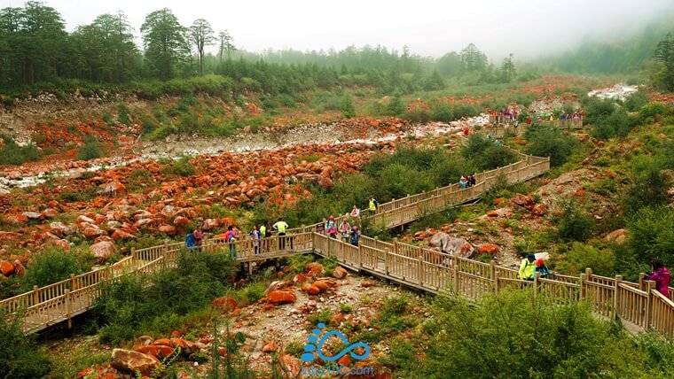 2、在成都西门车站或成都新南门汽车客运中心乘车,每日6:30、7:00、7:30、11:30有至泸定汽车,空调车为30元(如选择下午出发,则下午16:00、16:30都有车出发,为卧铺车,上铺96元,下铺104元)。穿二郎山隧道抵泸定县,当晚食宿泸定。次日晨乘每日7时泸定县至沟口磨西的公共汽车,票价15元/人。在泸定可顺游大渡河上着名的泸定桥。(与第一条路线同样走法,只是在泸定稍作停留。)